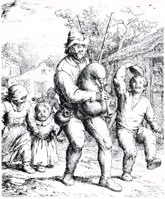 Dorfmusik wie aus dem 18. Jahrhundert mit Dudelsack, Böhmischer Bock, Drehleier, Flöten und